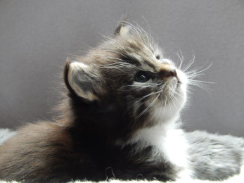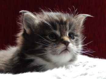 This is a faulty gene and makes the kittens’ heads misaligned – i.e. small eyes set far apart, and / or a very broad nose.